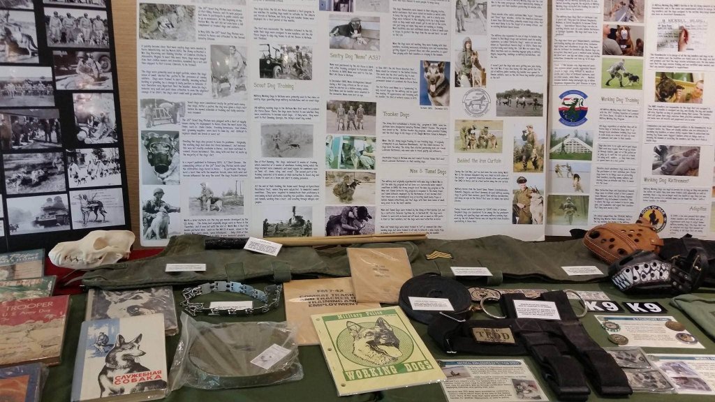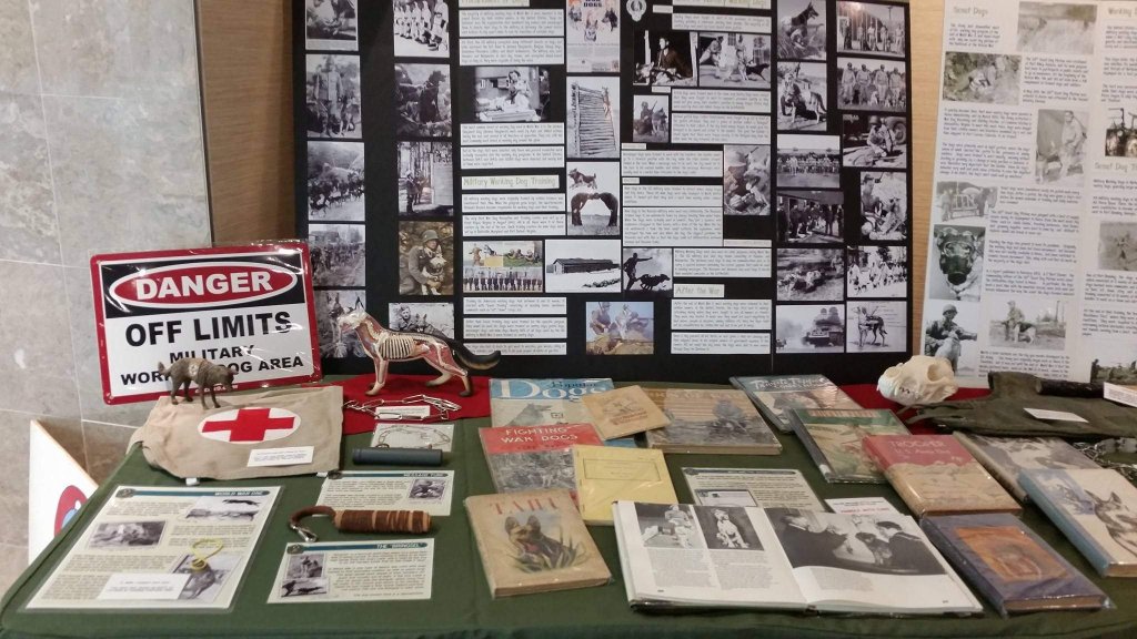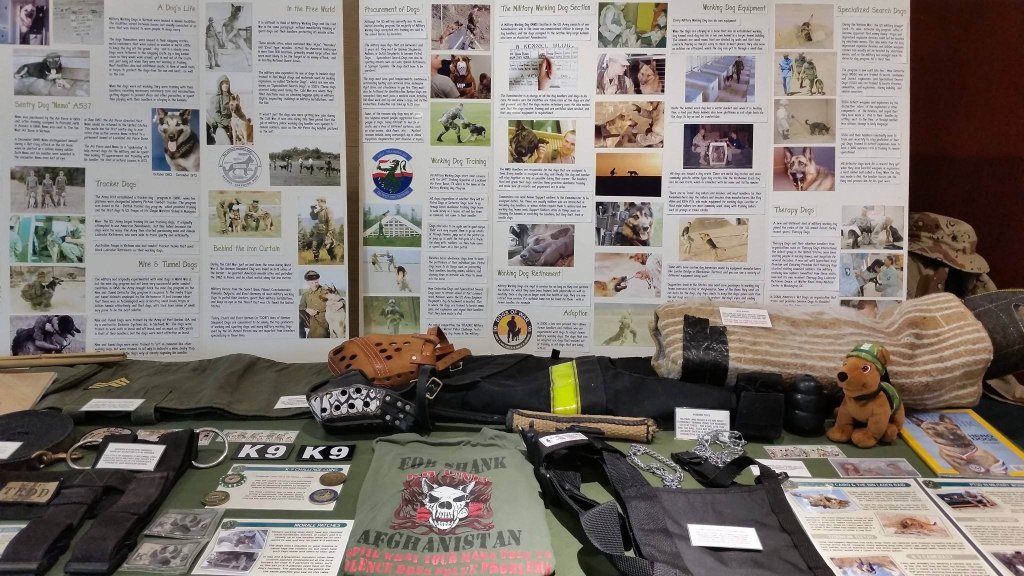 We try to include a little bit of everything related to military working dogs in our display, including some of the well-known mascot dogs (like Stubby and Smoky), as well as current uses of the dogs, which include military therapy dogs who visit with the soldiers downrange and in military hospitals stateside.